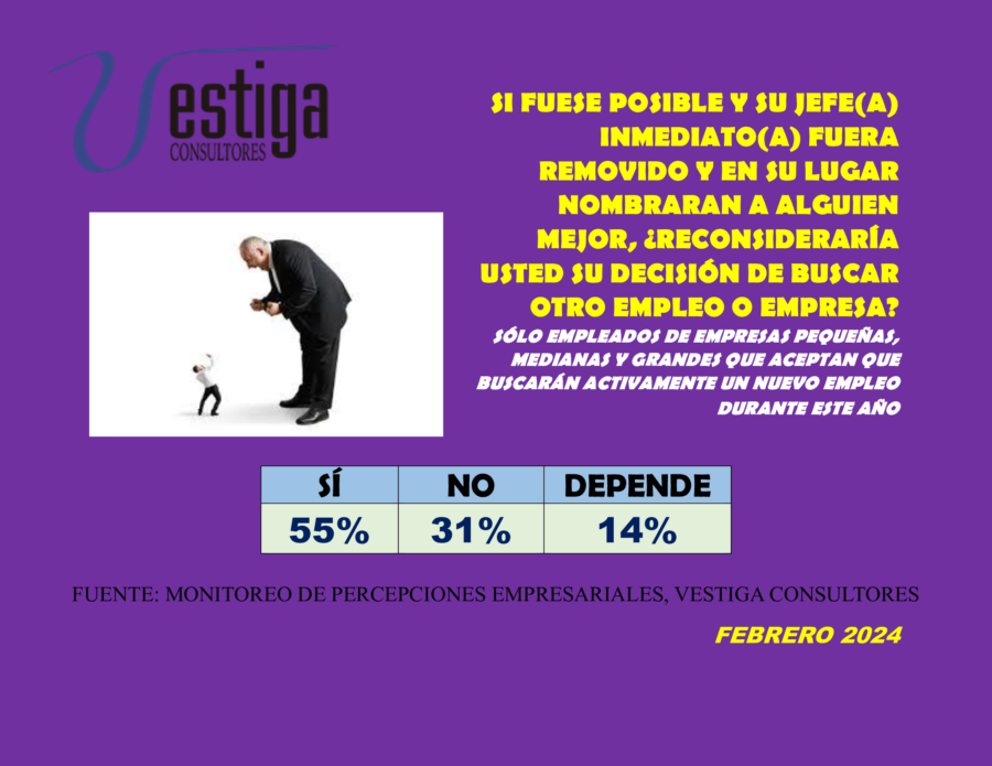 MAYORIA DE QUIENES BUSCAN EMPLEO PERMANECERIAN EN SUS ACTUALES EMPRESAS SI SUS JEFES INMEDIATOS FUESEN REMOVIDOS